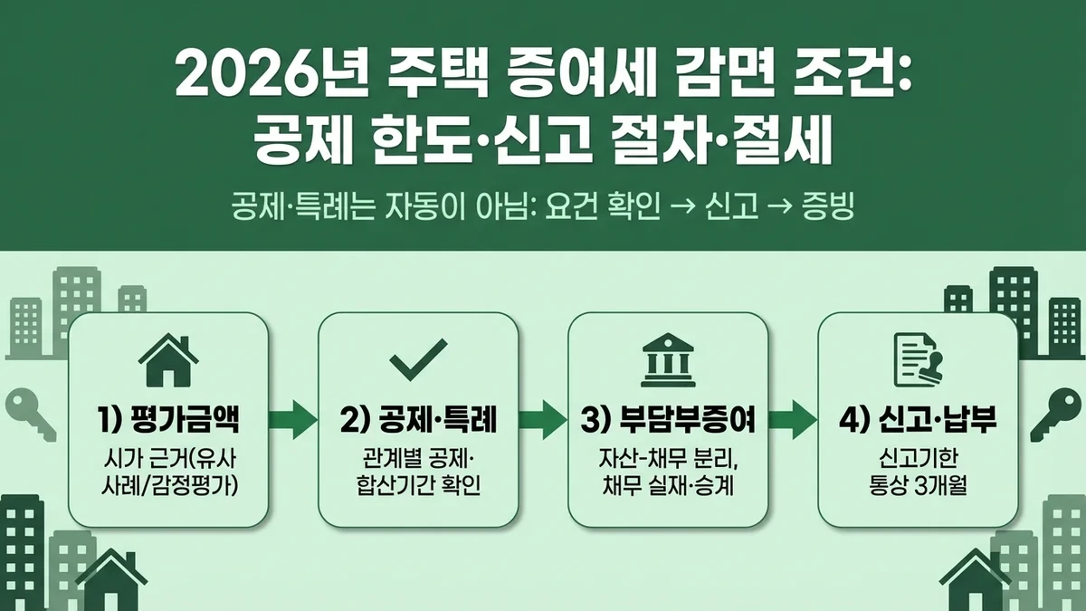 많은 분들이 '감면'이라는 단어에 기대감을 가지지만, 세금 공제나 특례는 저절로 적용되는 것이 아니라, 명확한 요건을 충족하고 정확한 절차를 거쳐야만 그 혜택을 누릴 수 있습니다. 이 글에서는 2026년 주택 증여와 관련하여 세금 부담을 최소화하고 잠재적 위험을 줄일 수 있는 핵심적인 정보와 실질적인 절세 전략을 자세히 안내해 드립니다.
