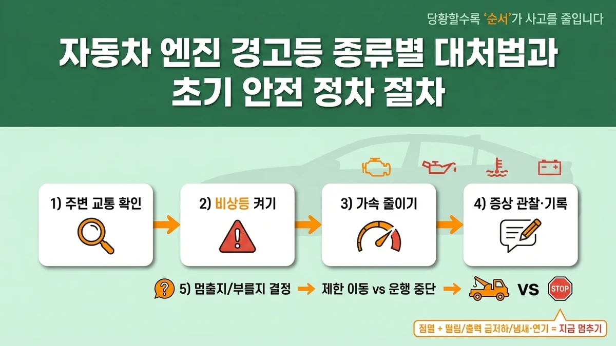 자동차 경고등이 점등되는 순간, 운전자가 가장 먼저 집중해야 할 목표는 명확합니다.